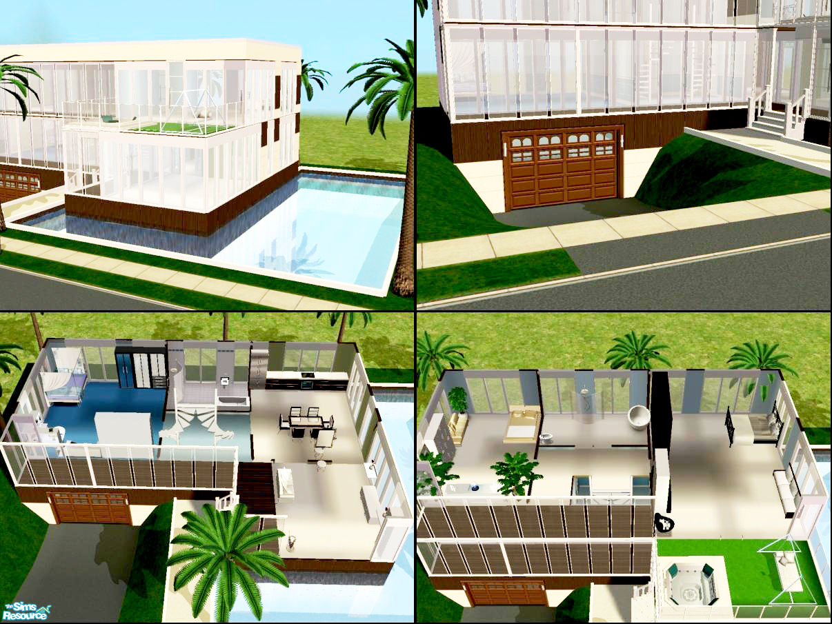 Here is my new modern house . With basement garage . Wall by Suza(simply styling) , shoukeir(sims2play) . Windows and doors by simgedoehns.de , [email protected] . Stairs by Marvine & Numenor . Fence and floor by ailias (and other floor by tribecasims). Enjoy