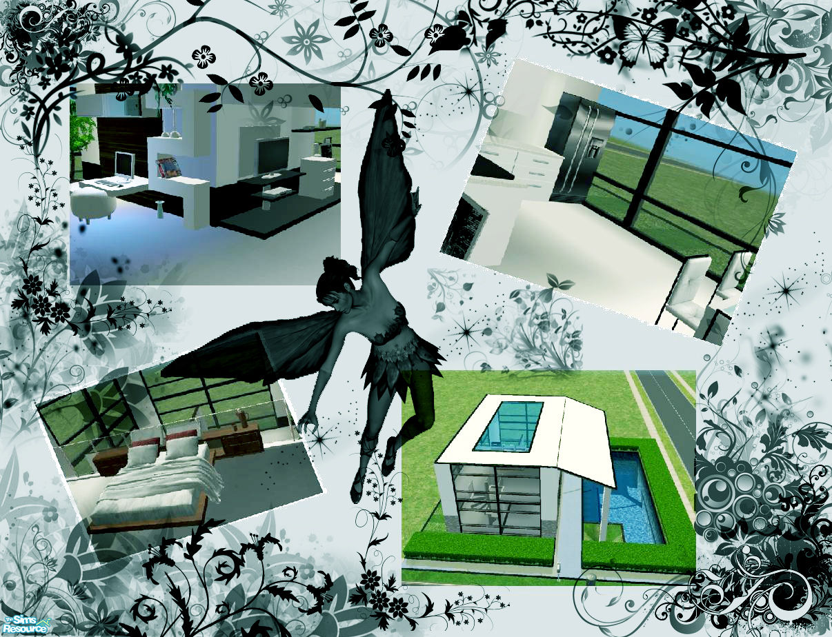 Modern house with pool . Fence by Ailias , Door by 4ESF , Floor by chriko@foru , Wall by pimpmysims and me . Stairs by Marvine , Column by stylishsims , Windows by Tiggy027 .