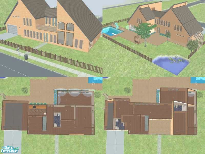 This is the residential lot, moderen masterpiece which comes with the game. I\'ve extended the house to add a garage, a few more bedrooms, bathrooms and a larger living space. The garden has also been decorated with the additions of a greenhouse and pool, it\'s now a modern family home.