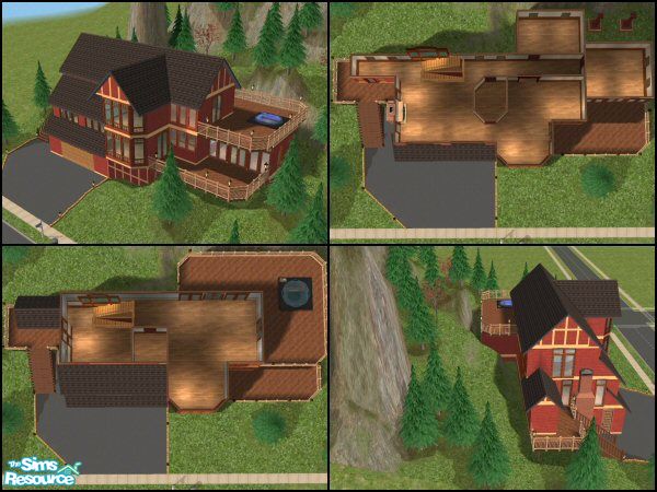 This lot will probably look best in the game if it is placed on an upward slope. Due to the elevation, the lot is difficult to play from the back side -- the other three sides play well. Includes basement, out door lighting, hot tub, two large decks. Have fun decorating! Your Sims will enjoy the lush pine trees and fresh mountain air. :D