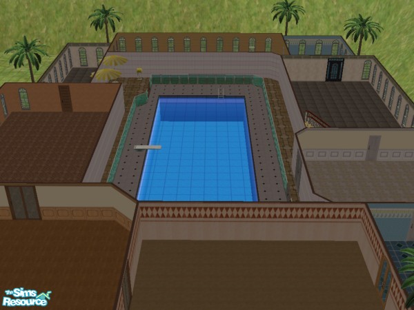 This house can serve like a beach house for your sims. It has a big swimming pool area, inside, on the first floor of the house. Many big rooms and they are all around the swimming pool. The palm trees sorounding the house will make your sims feel as if they lived in paradise.