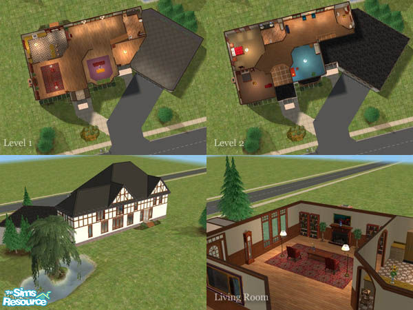 This 2 story tudor home brings some old world charm into the neighborhood. From the open foyer to the willow tree pond out back, this classic style can certainly give your sims a warm and inspiring home.