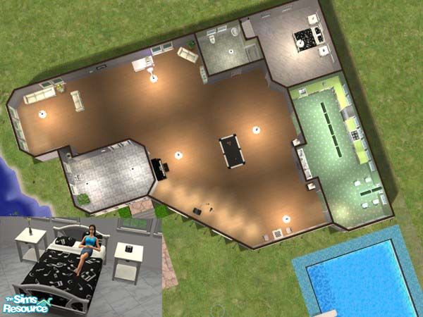 Medium-sized house for a sim-couple with 1 bedroom, 1 bathroom. Includes custom content (couple of walls&floors by windkeeper and simaddict99 and some object recolors by me :)