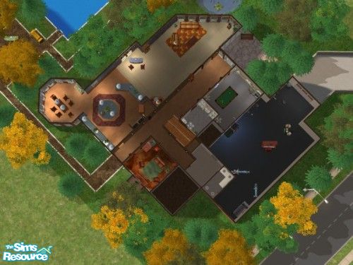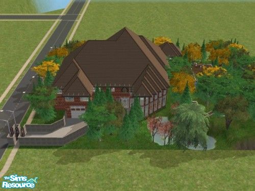 Washington state style home, w/wood siding and garage(converted into workout/music room). Huge trees, and a pond dot this lovly home for a large sim family