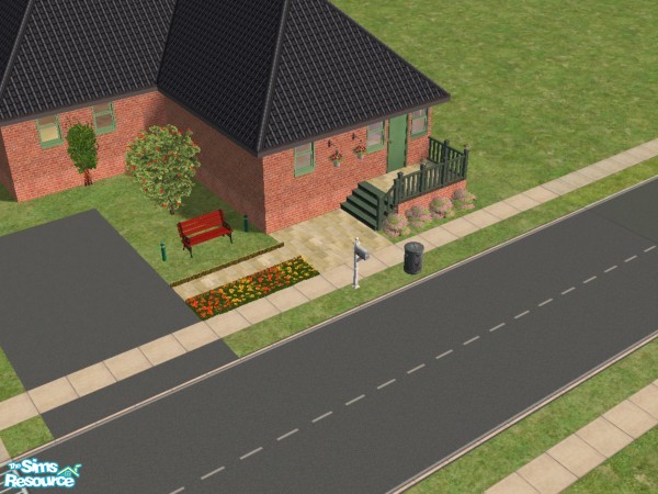A simple split level starter Home with open plan living and a driveway for a happy Sims couple.