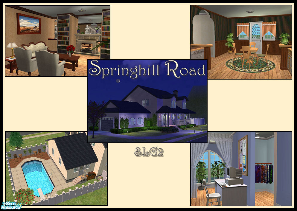 Springhill Road is a bright and cheerful home your Sims are sure to enjoy! *Please note: this lot should be placed on a street corner, as driveway is on the "side" of house. For more pics see:http://forums.thesimsresource.com/showthread.php?t=299937