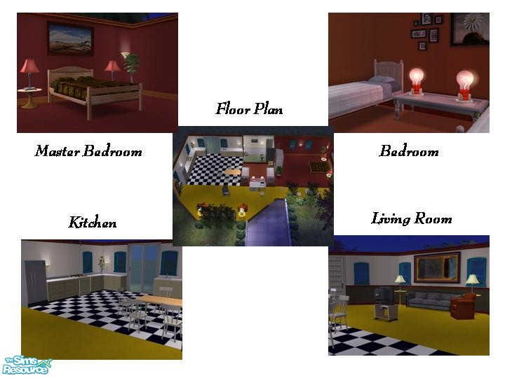 Sims 2 — Starter 3 by mselah — Two bedrooms, one bathroom. Perfect for a small family. Fully furnished, decorated and