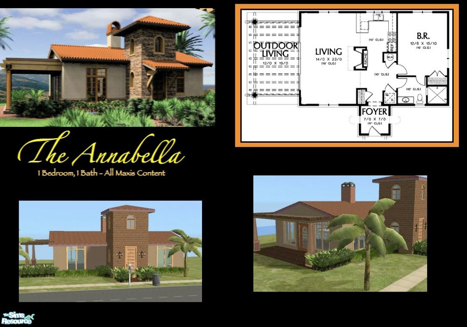 This Italian style 1 bedroom, 1 bath combines elements of spanish and southwest contemporary styles. The floorplan features covered terrace, empty-nester, nook/breakfast area and dining, open floor plan, one level living, and a central stone fireplace column. Great design! All Maxis Content.