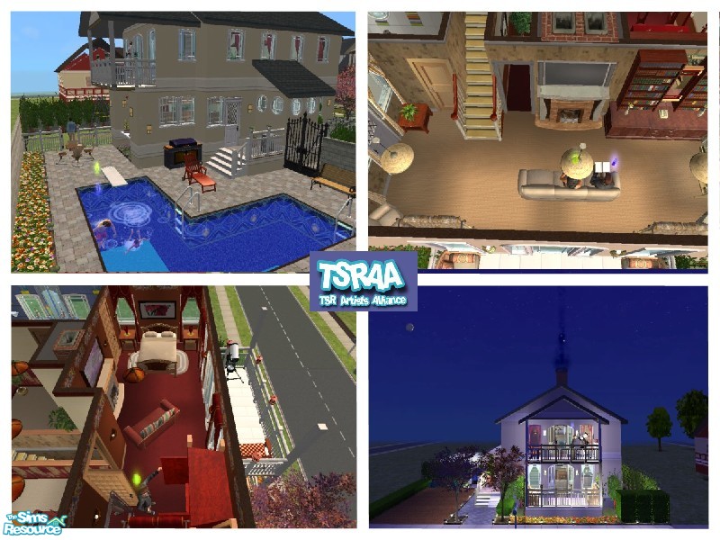 A small 2 bedroom family home, with 1 1/2 bathrooms a pool and patio area and parking for 1 car. TSRAA content. Check links for required meshes.
