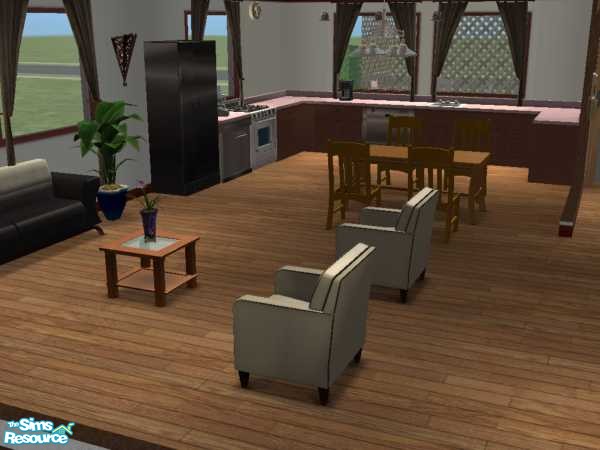 A modern family home w/ 3 bedroms, a open plan kitchen and livingrom, 2 baths and a large front patio. Only Maxis content.