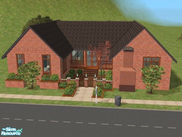 Sims 2 — The Upland by Pinecat — The entrance to this 1 story family home is through a beautifully landscaped courtyard.