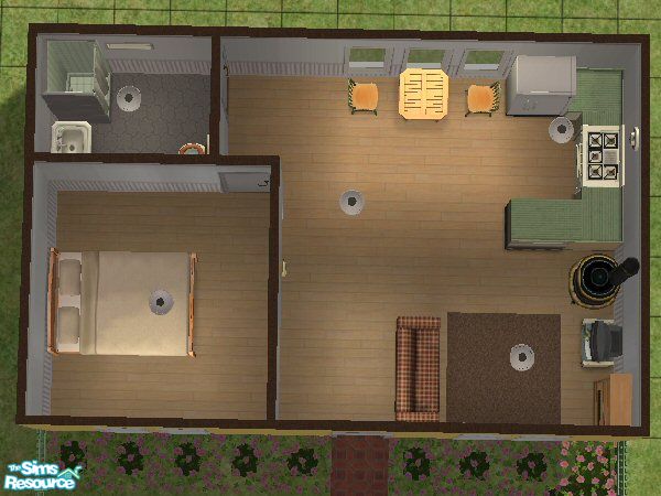 It's very yellow but it may suit that single sim with a bright sunny personality. One main room, one bath and one bed. Fully furnished to go at under 20000 simoleans.