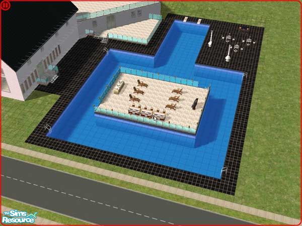 Thanks to TJsimulation for posting a link in the TSR forums that teaches how to make custom shaped pools. This one is simple, but I wanted people to see it can be done. Full instructions at http://snootysims.com/custompool.php - No rooms in the house yet, but it's a good house.