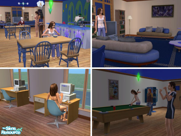 If you are like me sometimes it's good to have a dorm that is one level, that way I can see everything that is going on. This dorm has everything they need with not to much extravagance. It has female & male bathrooms, study, gym, cafeteria, lounge, games to play and step down into an indoor pool. Tested, works great, no custom content.