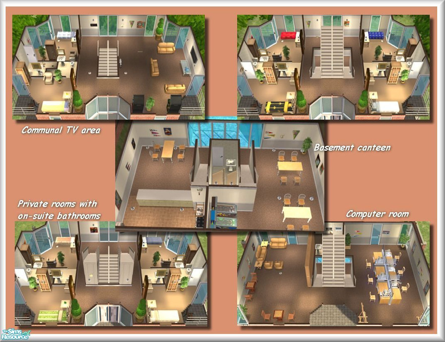 A fun place to live and learn! This tower style dorm has 10 rooms each with its own bathroom, a communal TV room, a computer room, library area and a basement canteen with windows that look into the pool.