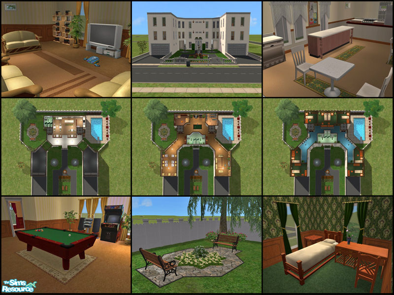 A lavish dorm for 8 students in a renovated stately home. Features two rear courtyards and parking for four vehicles. Central study, games and exercise areas, also has flower and toy-making facilities. Maxis content only and no hacks!