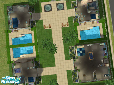 Pool Resort- has 3 units for rent. Each has a private pool. There are 2 community hot tubs, resturant,lounge, game room and small shop. Plenty to do for all ages. Enjoy and thank you for downloading. Maxis content only! Please do not re upload without my permission.