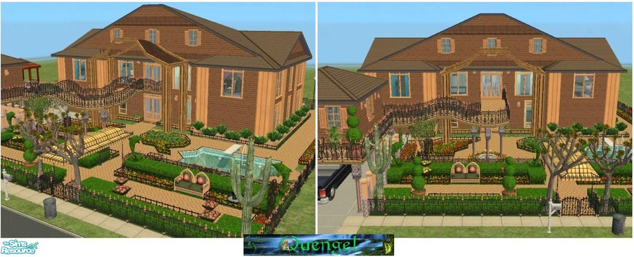 Size 3x3. With: Kitchen, livingroom, bedroom, 3 small bathrooms, 2 kids/teensrooms, fitnessroom, pokerroom, playground, terrace, carport pool, beautiful garden without need to gardening. TESTED IN GAME! If you like my house/s, you may click on the \"Thank The Artist\"-Button THANKS & ENJOY IT :)