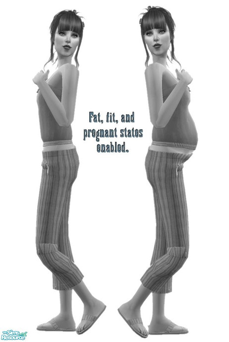 This mesh has cute accents and is bump, pregnant, and fat state enabled. Have fun recoloring it!