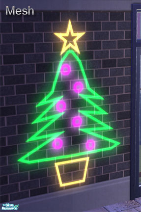 A neon wall decoration for Christmas. It's good for outdoor and looks better at night. The Christmas tree and the decorative balls can be arranged with at least one recolor installed.