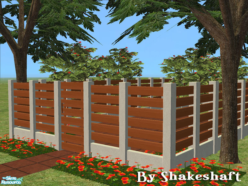 Sims 2 — Ascot Tall Fence  by Shakeshaft — Part of a set of new fences with concrete posts and wood rails, there are 3