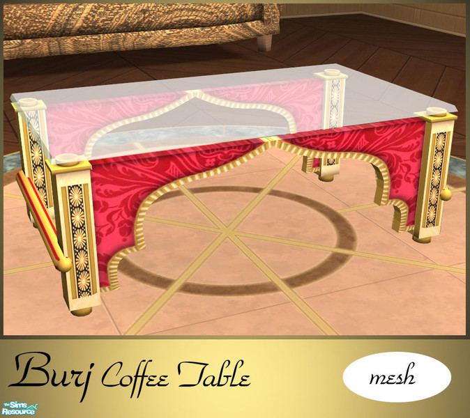 An elegant and colorful living room made of gold, inspired by Dubai\'s Burj Al Arab. The set contains 6 meshes and 34 recolors.