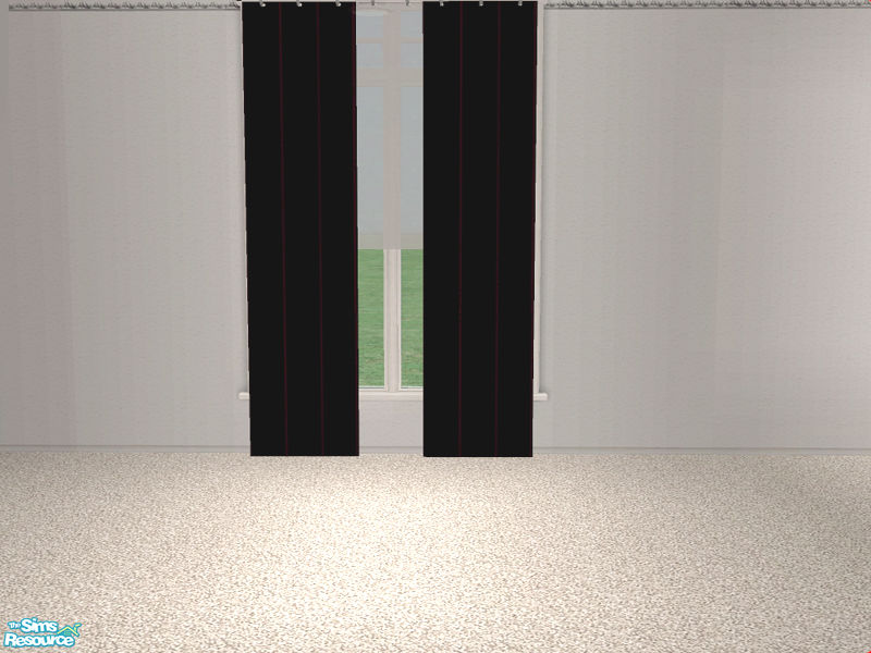 Black curtains with red stripes to accent the Clic livingroom