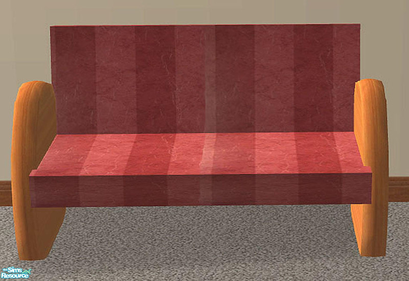 Red striped fabric on geometric shaped loveseat sure to satisfy the most sophisticated sim. New mesh cloned from base game object so no EP's should be required. However, they were created with all EP's and SP's installed.