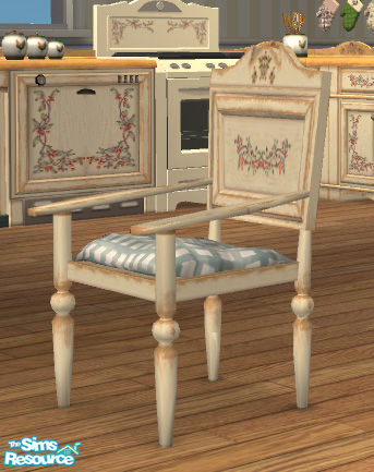 New country match cahir. Great add-on piece, use in kitchens, diningrooms and with desks. Uses Maxis Country \"A less threatening Rack\" wood texture and \"Blue Ribbon\" counters- sink curtain for the cushion fabric.
