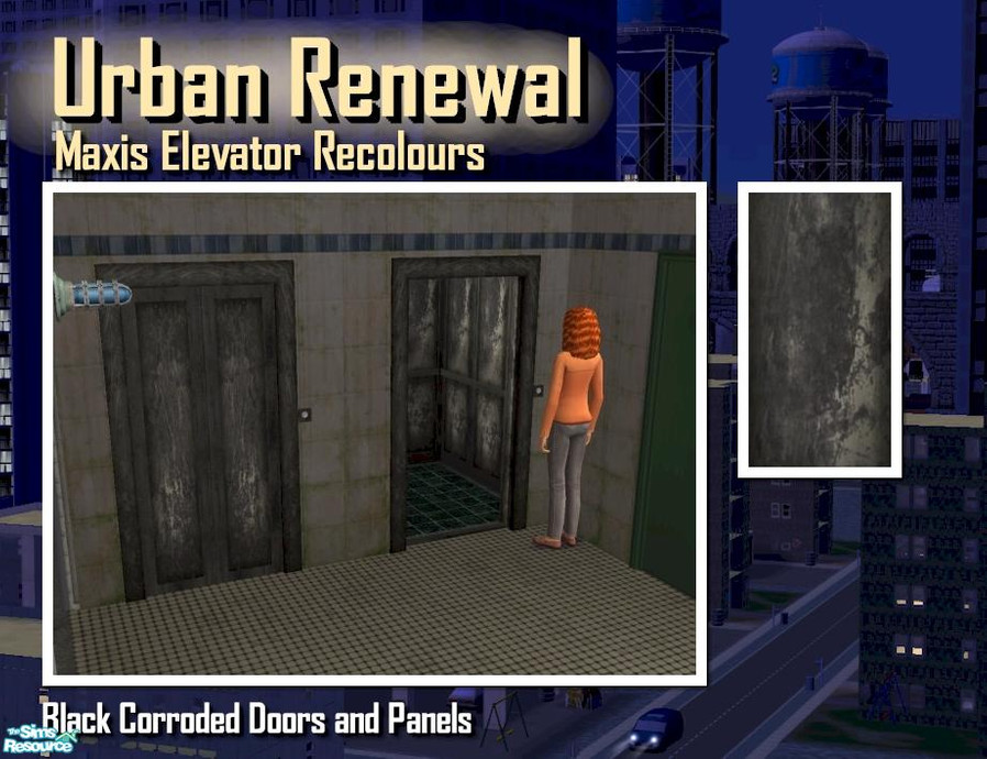 This is the panel (not the metal trim) of the elevator in corroded black metal.