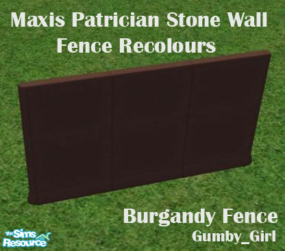 A set of 6 fences using the Maxis Patrician Stone Wall in Concrete as a base. Stucco textured fences in burgandy, cream, grey, black, brown and white colours.