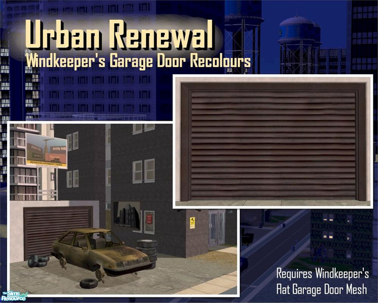 A RECOLOUR of Windkeeper's flat garage door (mesh required - see link). Great for urban and industrial lots. Requires Nightlife.