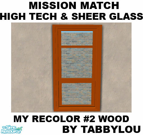 Match My Recolor #2 Wood Recolor of High-Tech Loft Windows, which also recolors the Sheer Glass window frames, to match the mission style OFB woods & my wood recolors. No EP's required. Enjoy!