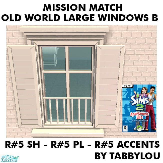My Recolor #5 Wood Shutters with Recolor #5 Plaster & White Accents Recolor of ALs Old World Large Windows with Other Wood Shutters with OFB Maxis Woods & My Recolors with coordinating plaster & accents (hinges & rail). Black Shuttered Windows Set A released yesterday. Requires AL EP. Enjoy!