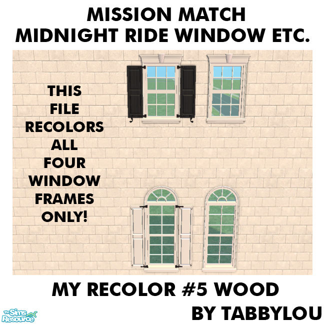 My Recolor #5 Wood Recolor of the FRAMES ONLY for the Midnight Ride Window, Lafenetre Shuttered Window, Lafenetre Window Full-Length & the Lafenetre Stately Full-Length Shuttered Windows. Enjoy! *Shutter recolors are in the Lafenetre Shuttered Window recolors set coming tomorrow.*