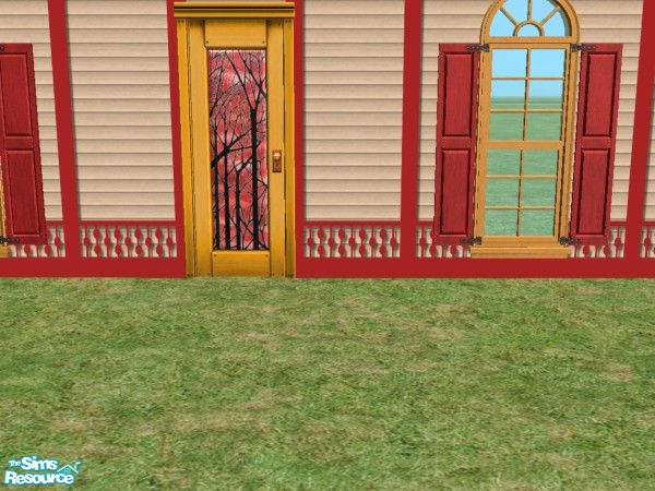 Mostly recolors to match the Maxis shuttered windows and my Victorian siding. Some original stained glass windows in the doors. TSRAA.
