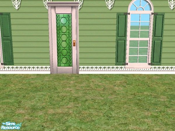 Mostly recolors to match the Maxis shuttered windows and my Victorian siding. Some original stained glass windows in the doors. TSRAA.