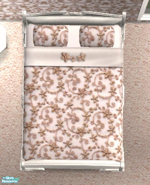Bedding from the Princess Perfection bedroom set. 2 sets include matching beds, sofas, walls, and carpeting. Walls and carpeting tile seamlessly. Looks great in game!