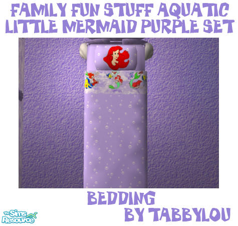 Bedding (for single & double beds) in the Ariel Purple Little Mermaid recolor of Aquatic items. Enjoy! Get curtains to match the bedding, links to sets below by windkeeper, bitzybus, mutske & simaddict99.