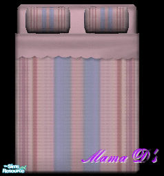 A nice striped pattern of peachy pink, and blue colors bedding. To match my "Mama D's Sims2 Paper 0002 Series" see my profile for the matching walls.