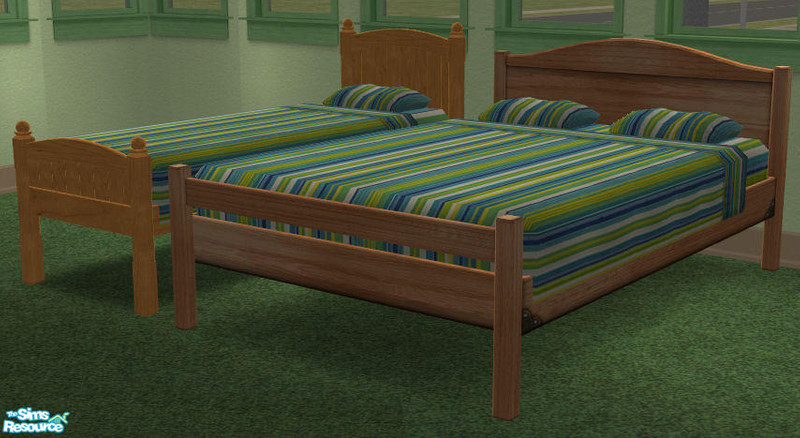Some nice masculine blue and green striped sheets and bedspread for your sims. Look for matching items soon. (Or, download Starter 23 by TKayO home for some of he matching items.)