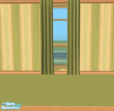 Olive green curtains to match my basic bedroom textiles set. Unfortunately, unable to link directly to the mesh - from the main page on Sims Design Ave, click on Contemporain, then Louisiana set, scroll to bottom of page. It seems you have to download the whole set,when unzipped it is in accessoires marked as Frances_RideauxCourtsDroits1x1.