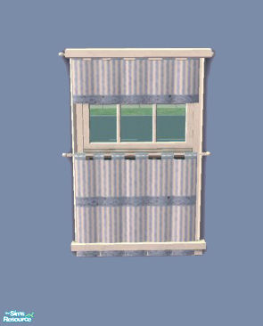 Pale blue and white striped curtains, ideal for brightening up your simmies kitchens.