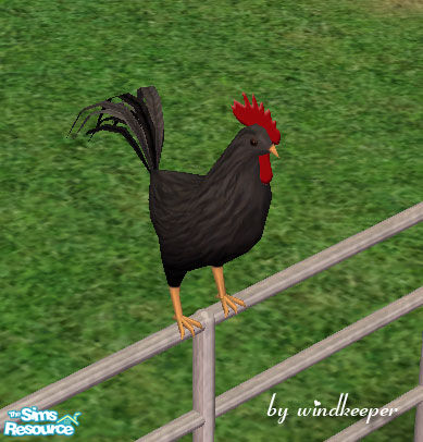 Sims 2 — Black rooster on fence by Windkeeper — *Jun 17/06 updated to remove shine* You need to download "Brown