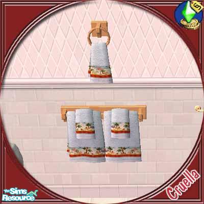 Fun tropical beach scene bathroom towel set. Requires "Open for Business".