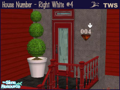 Right positioned house number, white #4.