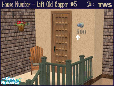 Left positioned house number, old weathered copper #5.