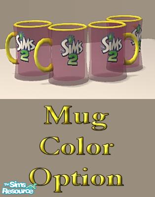 Purple Glass mugs color option - shown with the default logo - No expansion packs required, but they are placable on OFB shelves