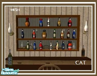 A new shelf with mirror back loaded with bottles for behind the bar. This is the main mesh file.