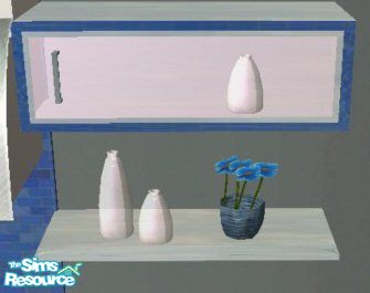 Recolour of SimsInParis #4 kitchen using blue tile, metal and glass. Textures by WordCobbler for challenge #44.